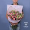 Bellísimo ramo de 24 Rosas con 10 Tulipanes y follajes finos, una elección de gran gusto.