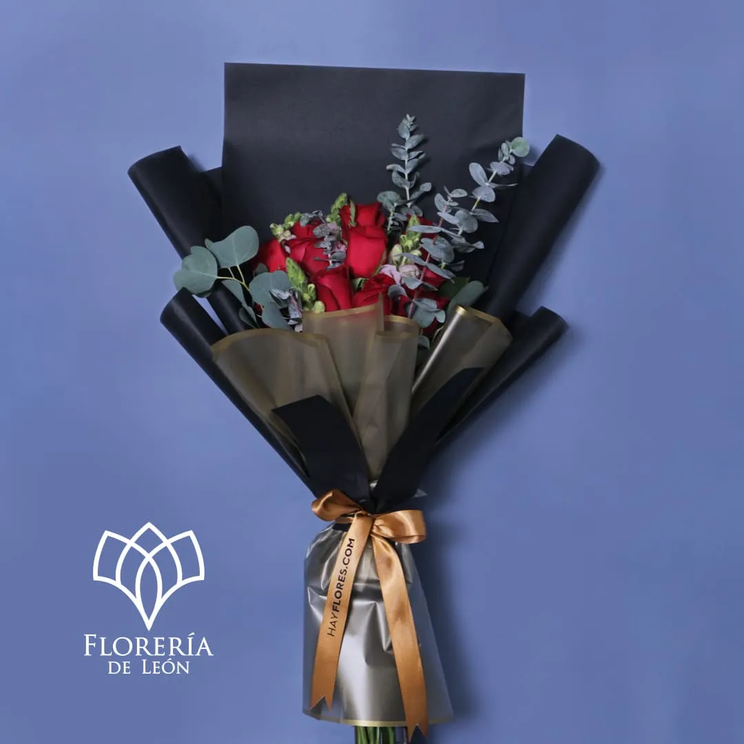 12 rosas papel negro y follaje