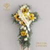 El arreglo Aurora contiene 36 rosas en tono blanco, follaje fino como dolar, perritos y clavo, los cuales van sobre una base de cerámica blanca.