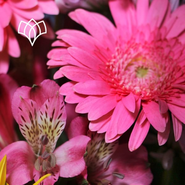 Esta es una distinguida canasta floral muy fresca. Compuesta con diferentes flores; Girasoles, rosas, astromelias, gerberas y follajes finos para complementar.