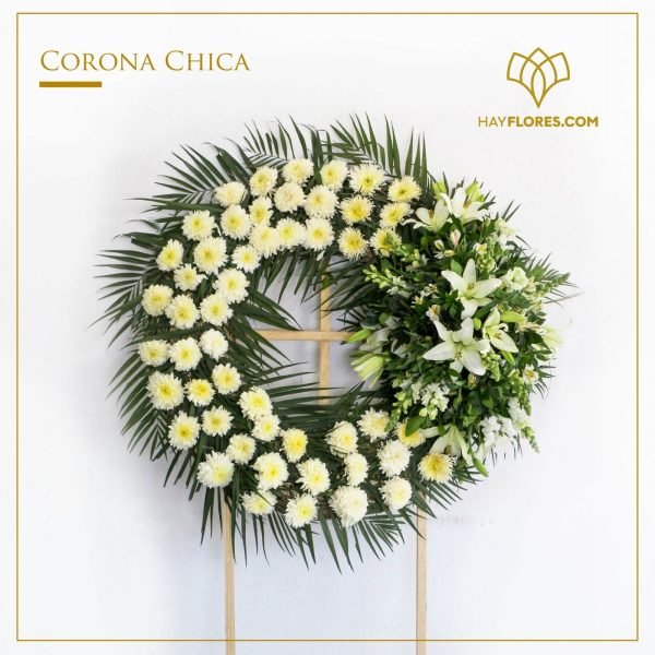 Un arreglo floral que expresa respeto, paz y acompañamiento. La corona medallón chica, elaborada con flores blancas y follajes naturales, es un gesto delicado y sincero para honrar la memoria y transmitir condolencias con elegancia en momentos de despedida.