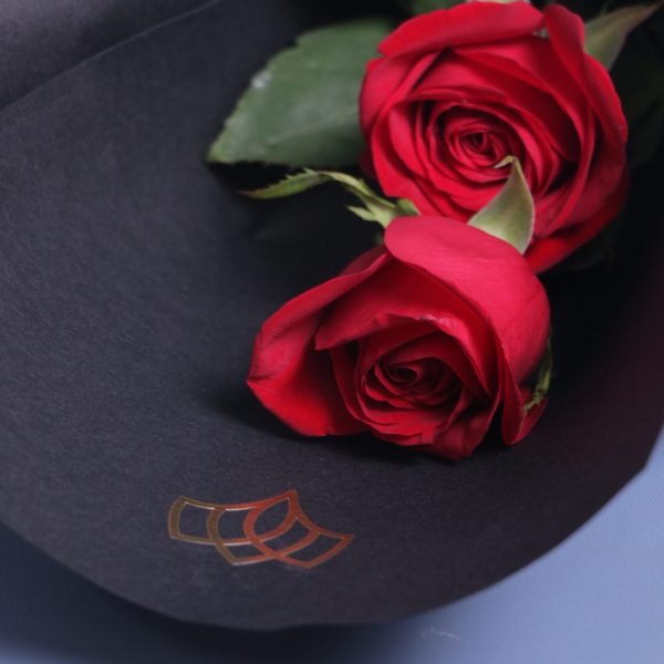 Adorable ramo de 2 rosas, incluye papel y listón.