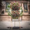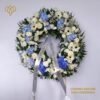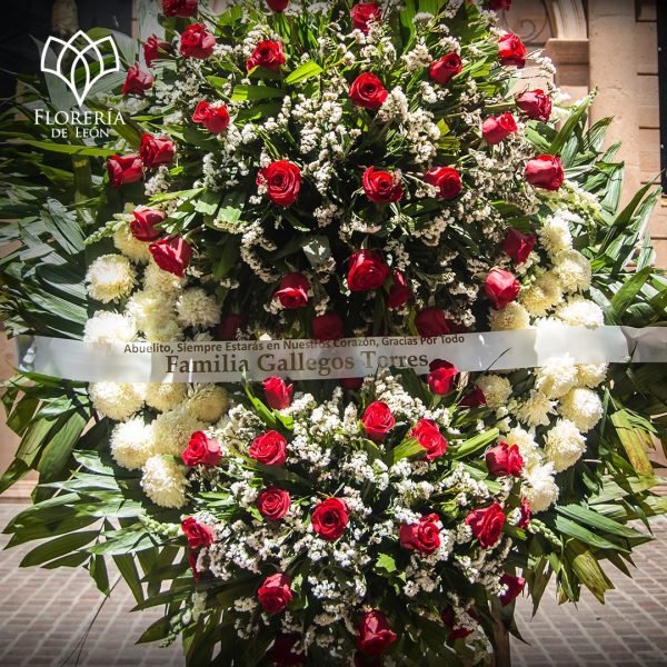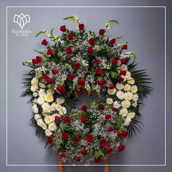 La corona es de tamaño grande, con dos medallones con rosas, polares y follaje fino.