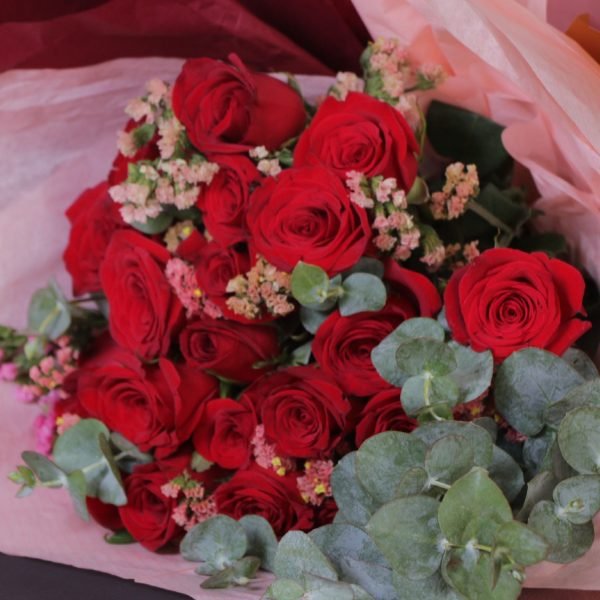 Hermoso ramo de 24 rosas rojas, ideal para sorprender a esa persona especial en cualquier ocasión.